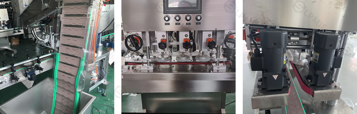 The inline automatic capping machine is a highly efficient automated system widely used in industries such as food, pharmaceuticals, and cosmetics. It plays a crucial role in securely sealing bottle caps to prevent leakage and maintain product quality. This machine consists of multiple integrated components that work together to ensure seamless operation.